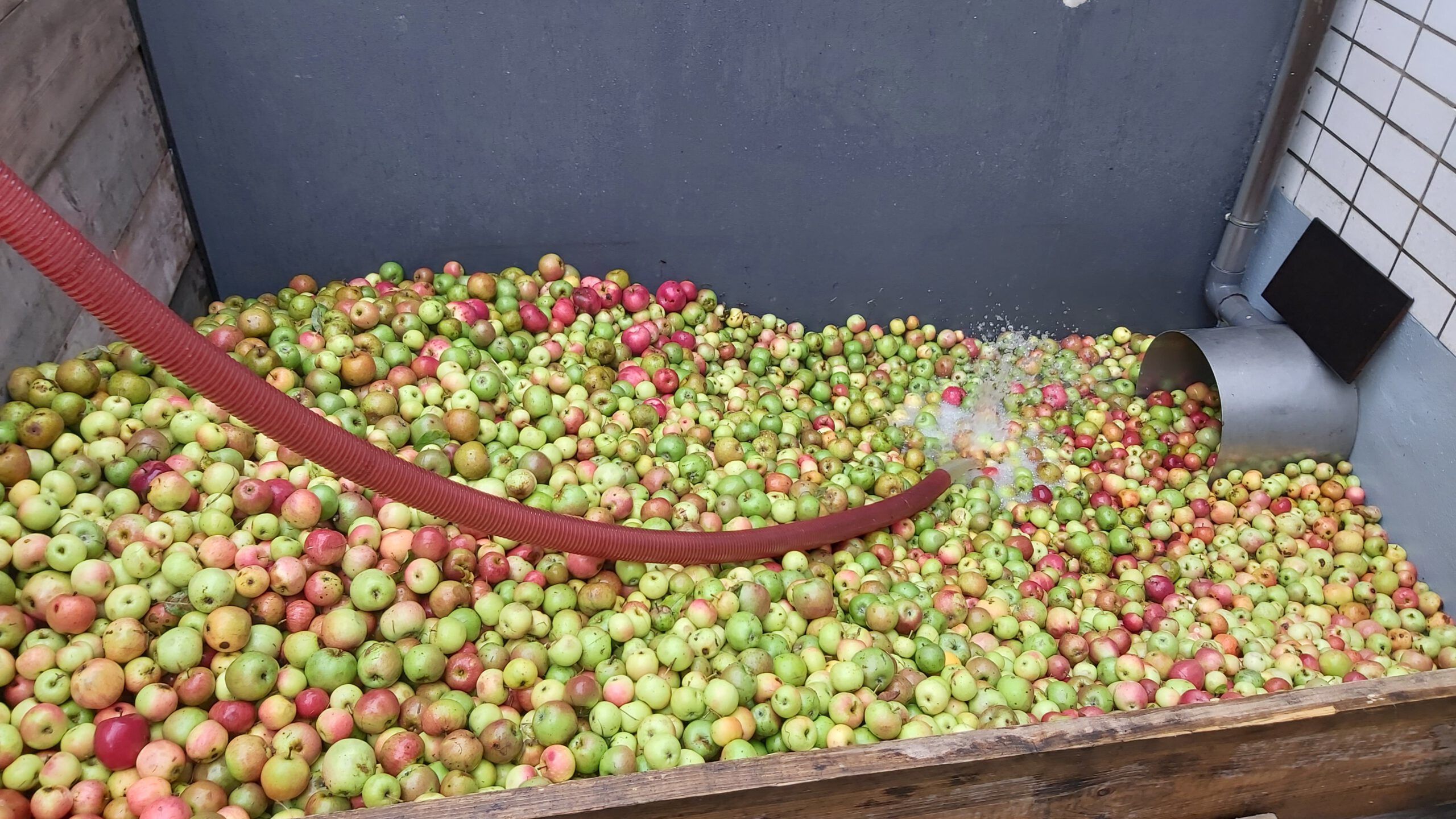 Aus hygienischen Gründen lassen wir unsere Äpfel bei der Kelterei Schäfer in Sprendlingen Keltern, Pasteurisieren und Abfüllen.