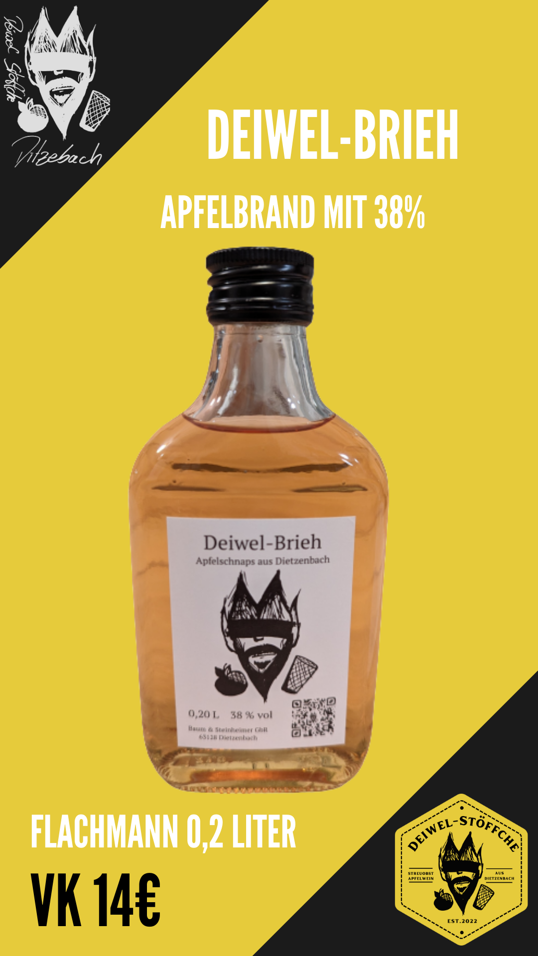je Flachmann Deiwel-Brieh 14 € (0,2 Liter)