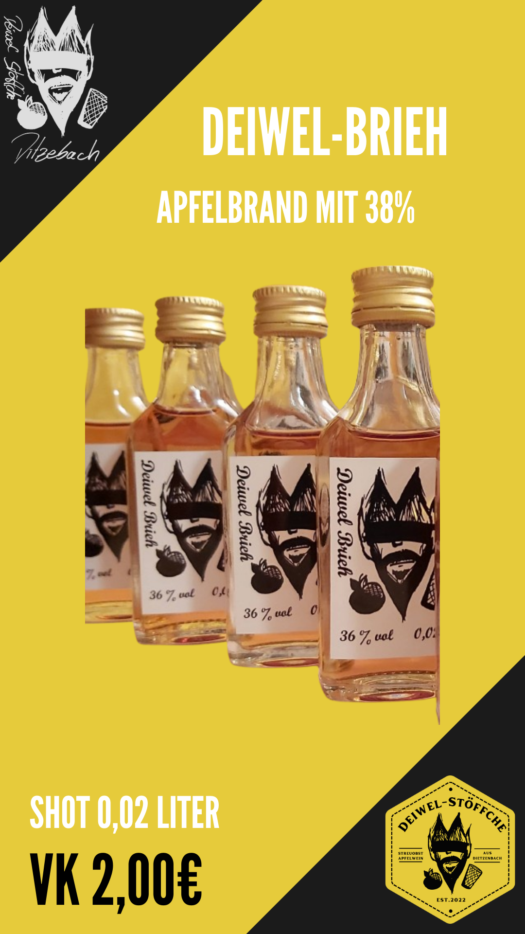 je Shot Deiwel-Brieh 2,00 € (0,02 Liter)