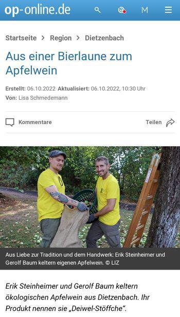 Wir sind nun Teil der Hessischen Apfelwein- und Obstwiesenroute. Ein Artikel der OF-News.