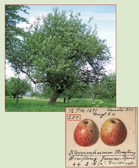 Leider ist über diese Sorte nicht mehr viel zu finden, außer diese alte Abbildung ein ein Altbaum von dem Reiser geschnitten wurden.