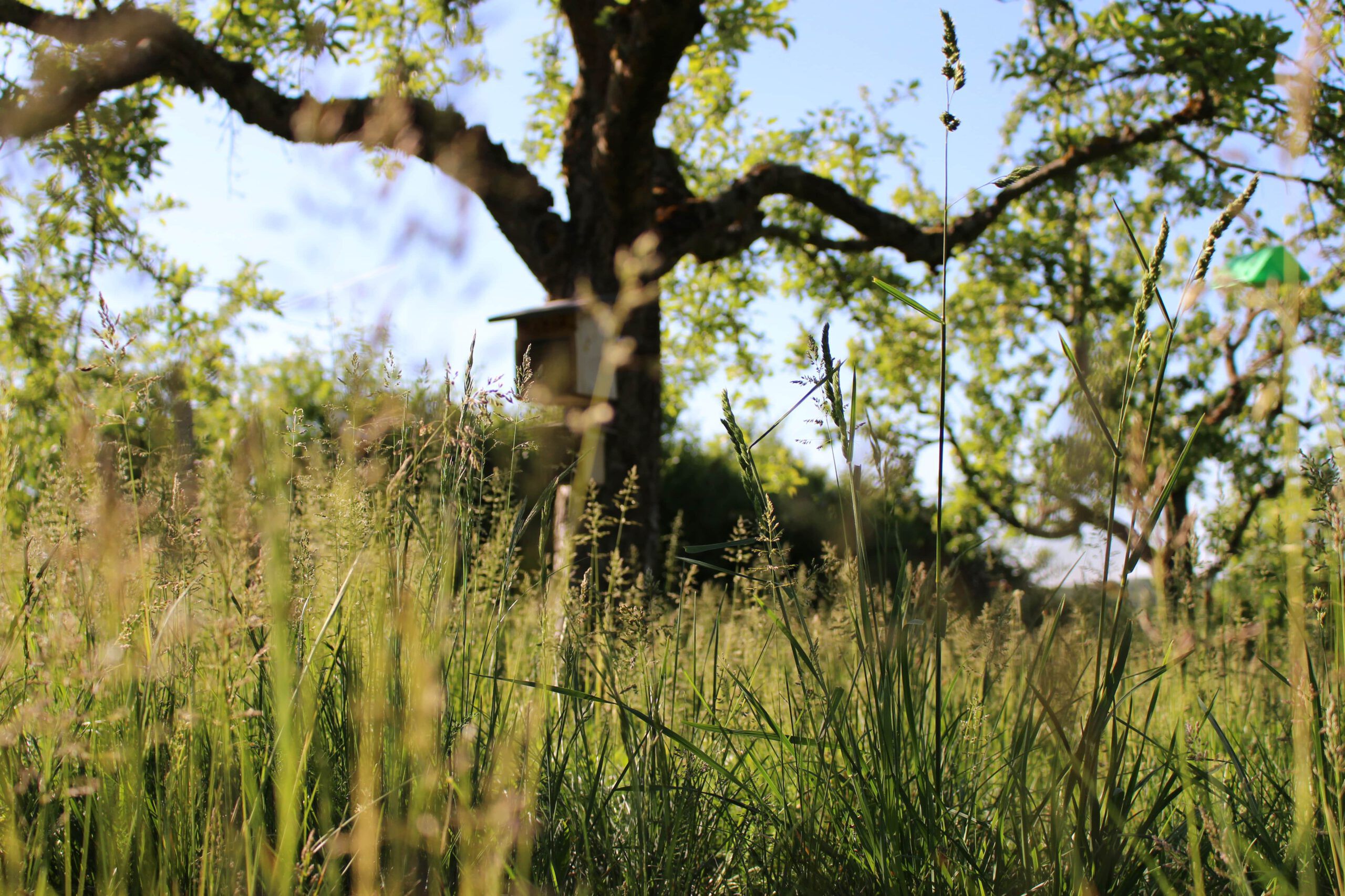 Wie es sich bei der Pflege einer Streuobstwiese gehört, wird bei uns auch nur zweimal im Jahr gemäht. Hier halten wir uns an die Vorgaben der Naturschutzbehörde.