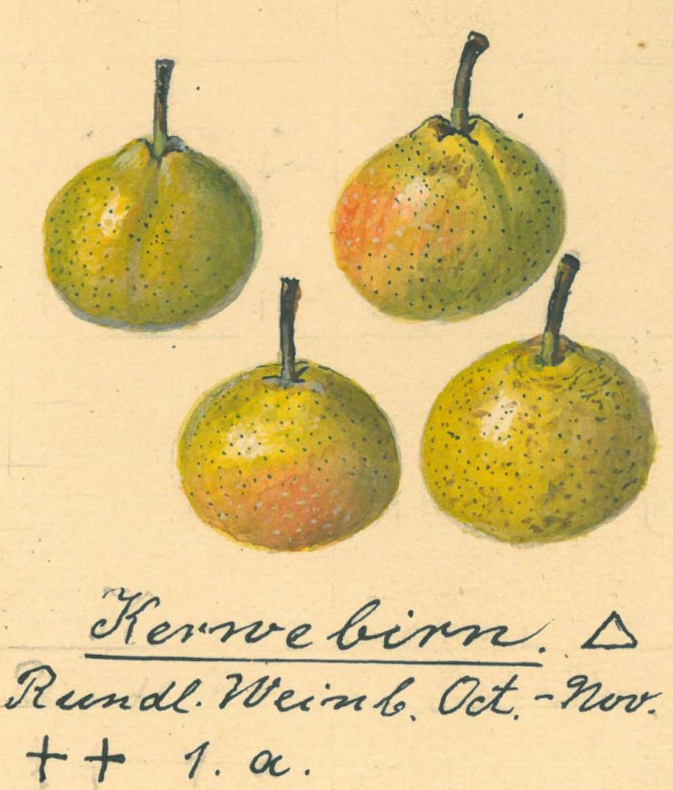 Bei der Birnensorte „Kerwebirn“ (Kerbbirne) handelt es sich um eine echte alte Lokalsorte aus Wiesbaden.