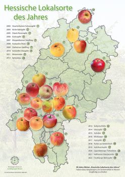 Mit der Aktion „Hessische Lokalsorte des Jahres“ leistet die Landesgruppe Hessen des Pomologen-Vereins seit 2002/2003 einen wichtigen Beitrag zur Erhaltung des pomologischen kulturellen Erbes und der regionalen Sortenvielfalt in Hessen. Aus dieser Liste erwählen wir unsere Bäume der Zukunft.